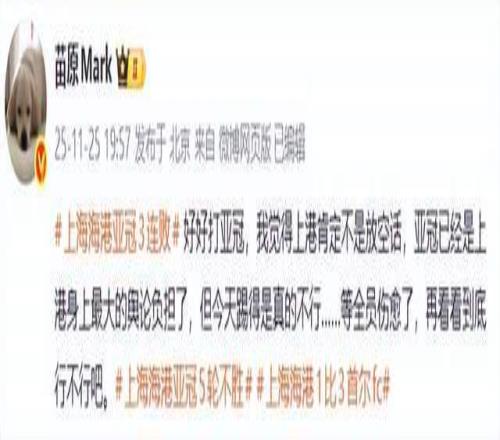 另一位足球記者苗原老師則表示,“好好打亞冠,我覺得上港肯定不是放空話,亞冠已經(jīng)是上港身上最大的輿論負(fù)擔(dān)了,但今天踢得是真的不行……等全員傷愈了,再看看到底行不行吧?!憋@然,苗原老師說得很含蓄了,他把責(zé)任推給了傷病,問題是,真的是傷病嗎?
