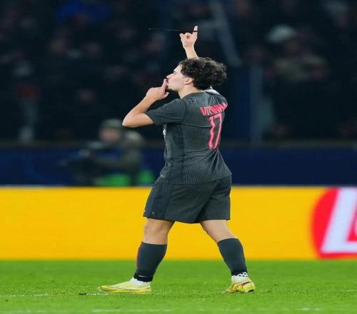 第45分鐘,維蒂尼亞弧頂迎球抽射扳平比分!1-1!