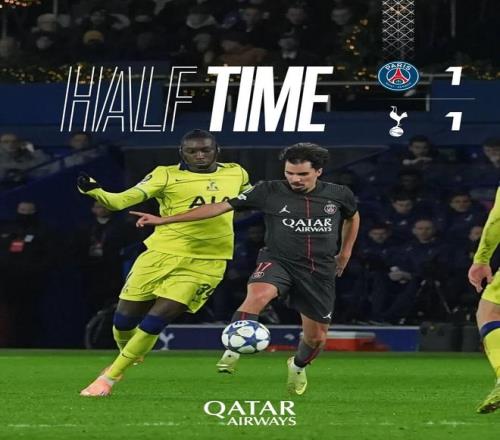 上半場(chǎng)比賽結(jié)束,我們暫時(shí)和熱刺戰(zhàn)成1-1。