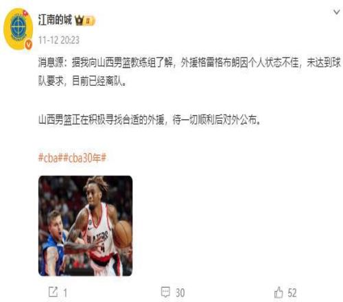 山西男籃已經(jīng)裁掉了格雷格-布朗和喬治-康迪特