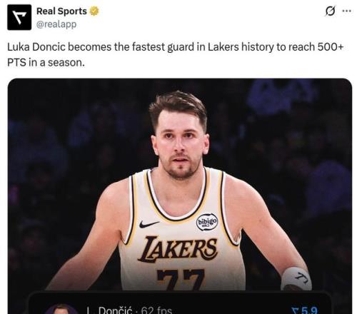 第六項(xiàng):東契奇本賽季得分已突破500分,僅花費(fèi)15場比賽成為湖人隊(duì)史最快后衛(wèi)。