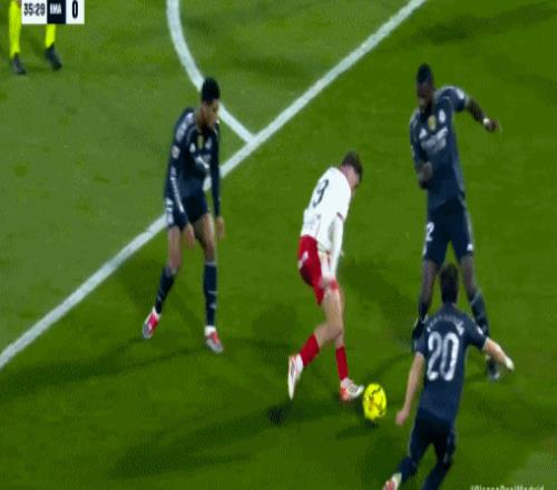 第23分鐘,維尼修斯突入禁區(qū)左腳射門,皮球偏出球門