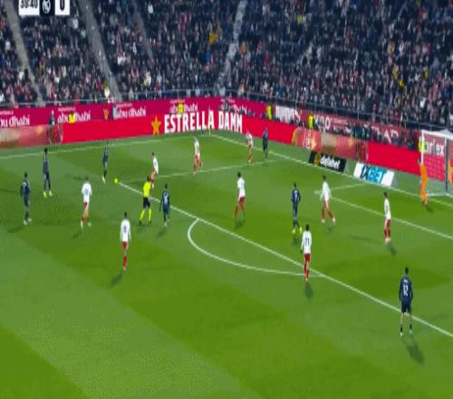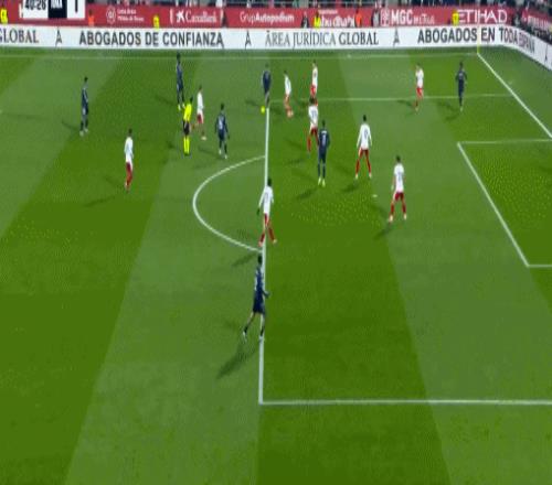 第45分鐘,打破僵局,歐納希勁射得分,皇馬0-1