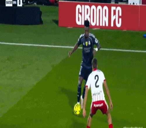第76分鐘,維尼修斯倒地,赫羅納球迷做出搞怪手勢(shì)