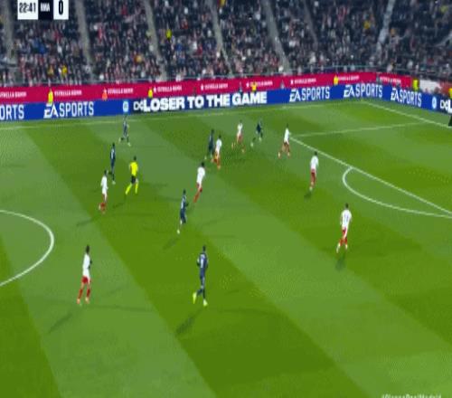 第9分鐘,姆巴佩傳球,居萊爾射門偏出