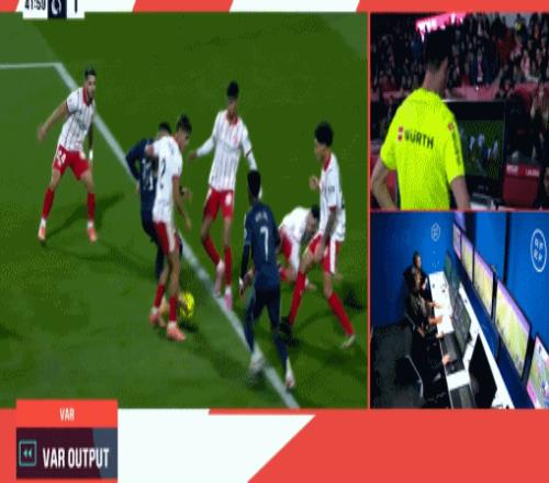 第41分鐘,姆巴佩捅射破門,不過(guò)手球在先被取消