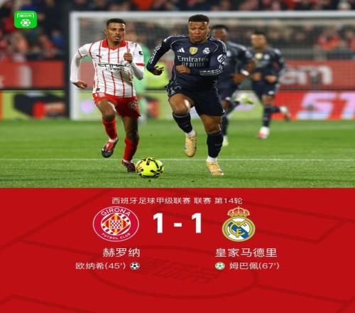 北京時(shí)間12月1日,西班牙足球甲級(jí)聯(lián)賽第14輪,赫羅納坐鎮(zhèn)主場(chǎng)迎戰(zhàn)皇家馬德里。上半場(chǎng),齊甘科夫助攻,歐納希打破僵局。下半場(chǎng),維尼修斯造點(diǎn),姆巴佩主罰命中。全場(chǎng)比賽結(jié)束,皇馬1-1戰(zhàn)平赫羅納,遭遇西甲聯(lián)賽3連平,聯(lián)賽的領(lǐng)頭羊位置也被巴薩取代。
