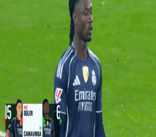 第46分鐘,皇馬下半場(chǎng)立馬做出調(diào)整,卡馬文加替補(bǔ)登場(chǎng)