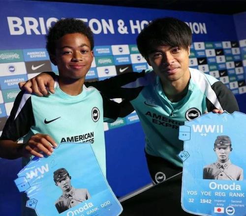 布萊頓俱樂部青訓(xùn)學(xué)院的X賬號(hào)11月27日發(fā)布一篇祝賀帖,稱其U12梯隊(duì)贏得了英超聯(lián)賽教育項(xiàng)目,將前往比利時(shí)參加“圣誕休戰(zhàn)杯”,并配上了一張小球員與三笘薰的合照,兩人手持印有小野田寬郎身著軍裝照片的卡片。