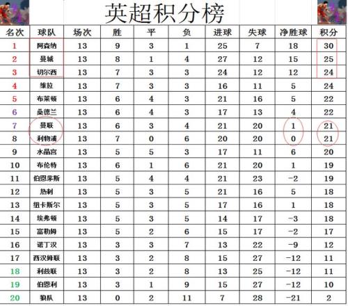 英超最新積分戰(zhàn)報(bào)阿森納平切爾西多曼城5分利物浦止頹勢升至第8