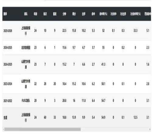 本賽季的劉禹彤來到上海后迎來了自己的巔峰賽季,場(chǎng)均22.5分鐘,拿到15.8分4.5籃板1.1助攻0.7搶斷0.4蓋帽,命中率52%,得分是WCBA生涯新高,籃板是WCBA生涯第二高。