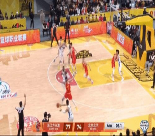 北京最后一攻,陳盈駿開球,杰曼第一個過來接球,在沒怎么受到朱俊龍防守壓迫的情況下突然將球交給雷蒙,雷蒙接球后第一時間想出手三分,但遭到胡金秋封堵,雷蒙左晃右晃始終沒有找到出手機會,只能強行調高弧頂出手,最終也是偏的有點離譜。