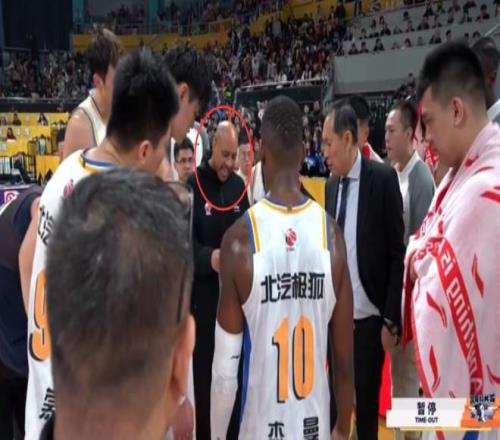 來看看比賽最后階段發(fā)生了什么?在胡金秋最后2罰打進后,廣廈領先3分留給北京最后6.1秒絕平機會,暫停期間,作為北京主教練的許利民并沒有拿起戰(zhàn)術板布置最后一攻戰(zhàn)術,而是把布置戰(zhàn)術的任務交給了外教布魯頓。