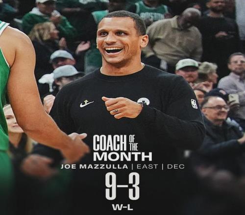 布倫森在12月份場均30.6分3.3籃板7.1助攻,投籃命中率47.5%,三分命中率40.5%。除了助攻,其余都比不上杰倫-布朗??赐陻?shù)據(jù)對比,大家就能理解布朗為啥不滿了。凱爾特人主帥馬祖拉,成功當選12月份的東部月最佳教練。