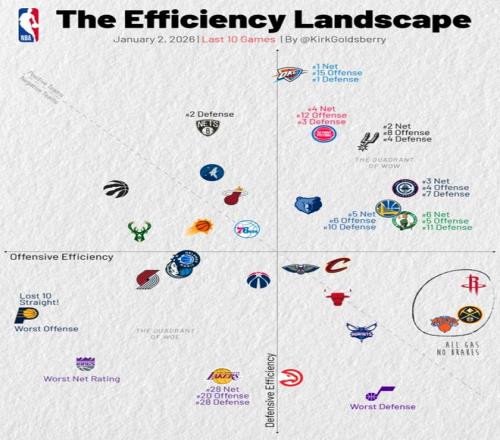 同時(shí)開季至今,火箭隊(duì)進(jìn)攻效率第二,防守效率第10,是5支攻防效率均殺入聯(lián)盟前十的球隊(duì)之一。