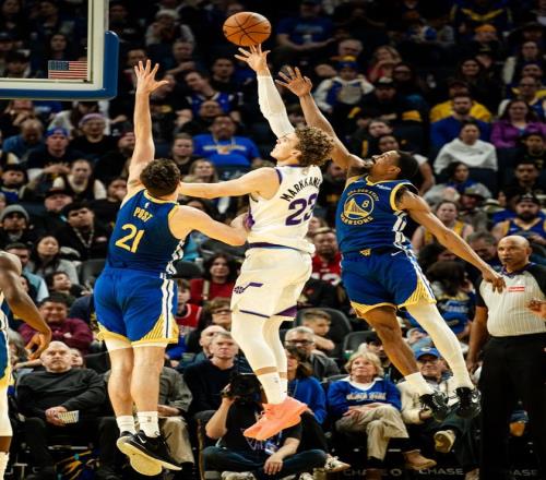 爵士隊的馬爾卡寧上半場得到21分,喬治得到15分和4次助攻;勇士隊的庫里得到9分,格林和穆迪各得到8分。
