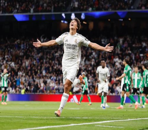 北京時(shí)間1月5日,西甲聯(lián)賽第18輪,皇馬在主場(chǎng)5-1大勝皇家貝蒂斯。本場(chǎng)比賽,皇馬青訓(xùn)球員貢薩洛-加西亞上演帽子戲法。賽后,貢薩洛-加西亞更新社交媒體動(dòng)態(tài),慶祝比賽勝利。