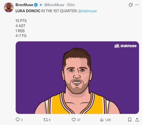 首節(jié)東契奇打滿12分鐘,7中4,三分4中1,罰球7中6,拿到15分1籃板4助攻但伴隨了3個失誤,東契奇這個賽季的三分球手感是真的不好,目前31.7%是生涯新低。