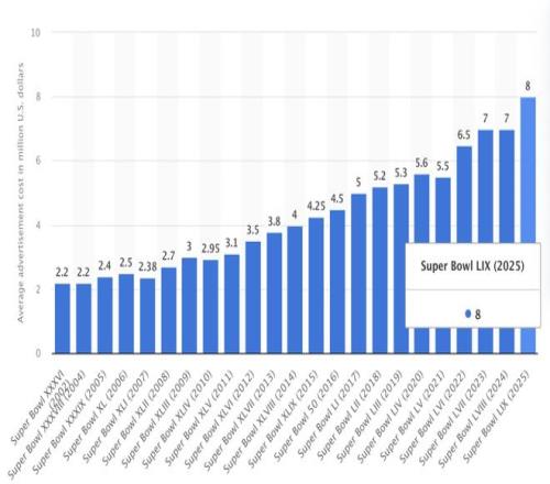 除此之外,賽中廣告也同樣是外界關(guān)注的焦點(diǎn),即便在2025年的超級(jí)碗,平均每30秒的廣告投放所需要的金額已經(jīng)達(dá)到800萬(wàn)美元的量級(jí),但超級(jí)碗作為世界體育的現(xiàn)象級(jí)標(biāo)桿,仍舊是一眾品牌青睞的平臺(tái)。根據(jù)相關(guān)數(shù)據(jù)統(tǒng)計(jì),賽后就單單是廣告本身在視頻平臺(tái)的瀏覽量就能超過(guò)數(shù)百萬(wàn),而平均每名觀眾在沒(méi)有幫助的情況下,更是能回憶起3.5個(gè)出現(xiàn)在超級(jí)碗的廣告商。