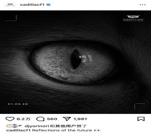在北京時(shí)間昨天晚間,凱迪拉克車隊(duì)在其官方社交媒體賬號(hào)發(fā)布動(dòng)態(tài),內(nèi)容為一只貓科動(dòng)物的眼部黑白特寫,照片整體左下側(cè)印有“2026年1月5日”的具體時(shí)間,并配文“未來(lái)的倒影”。