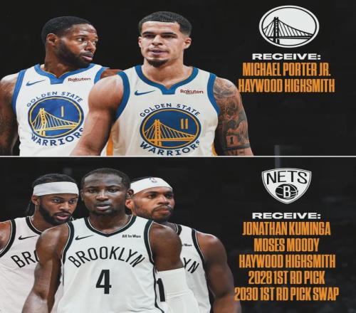 露天看臺(tái)(BR)模擬一筆交易方案:勇士送出庫(kù)明加、穆迪、希爾德、2028年首輪簽、2030年首輪互換權(quán),5換2得到小波特和海史密斯。現(xiàn)在的問(wèn)題是,籃網(wǎng)對(duì)庫(kù)明加不感興趣,所以勇士需要拉來(lái)第三支甚至第四支球隊(duì)參與交易。