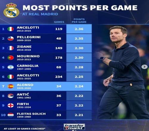 哈維-阿隆索的場(chǎng)均積分:僅僅排第七