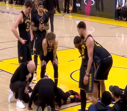 巴特勒的受傷發(fā)生在第三節(jié)還剩7分41秒。當時他在禁區(qū)中路躍起接隊友傳球,與熱火隊后衛(wèi)達維昂-米切爾發(fā)生身體對抗,落地時右膝明顯出現(xiàn)扭轉(zhuǎn),隨即痛苦地摔倒在地。