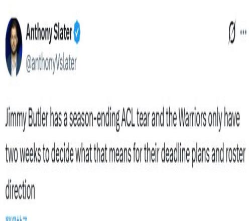北京時間1月20日,金州勇士的球星巴特勒右膝前交叉韌帶撕裂,遭遇賽季報銷級重傷。這一突發(fā)狀況,也讓這支球隊的未來發(fā)展方向徹底蒙上了一層迷霧。勇士隊記Slater帶來了關(guān)于此事的更多報道——
