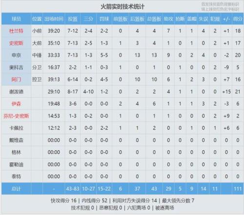 全場(chǎng)結(jié)束,火箭111-106戰(zhàn)勝馬刺,完成16分大逆轉(zhuǎn)。上半場(chǎng)馬刺狂轟70分,下半場(chǎng)僅得36分,其中第四節(jié)只有14分。謝潑德21分2板4助、申京20分13板9助2帽、杜蘭特18分4板7助。文班21投5中僅得14分10板2助,賽季最差一戰(zhàn)!