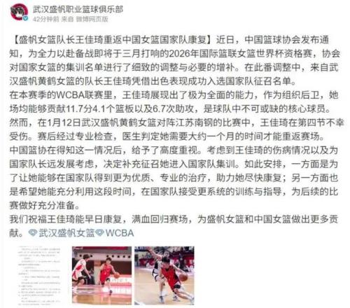這件事情的起因,是中國女籃為了備戰(zhàn)2026年國際籃聯(lián)女籃世界杯資格賽,籃協(xié)對國家女籃的集訓(xùn)名單進(jìn)行了細(xì)致的調(diào)整與必要的增補(bǔ),來自武漢盛帆黃鶴女籃的隊(duì)長王佳琦憑借出色表現(xiàn)成功入選國家隊(duì)征召名單,她在本賽季表現(xiàn)很強(qiáng)勢,作為組織后衛(wèi),她場均能夠攻獻(xiàn)11.7分4.1個籃板以及6.7次助攻(近期遇到傷病沖擊)。