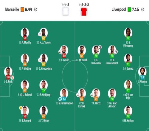 馬賽首發(fā):1-魯利、28-帕瓦爾、5-巴列爾迪、32-梅迪納、62-穆里略、19-孔多比亞(67'14-派尚)、23-霍伊別爾、9-古伊里(67'97-奧巴梅揚(yáng))、10-格林伍德、22-維阿、20-H·特拉奧雷(67'26-納迪爾)