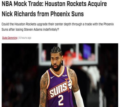 亞當(dāng)斯重傷無限期缺陣后,休賽期曾8換1杜蘭特實(shí)現(xiàn)雙贏的火箭與太陽應(yīng)該再次在交易截止日前合作?美媒建議休城1換1拿下在太陽隊(duì)郁郁不得志的理查茲。