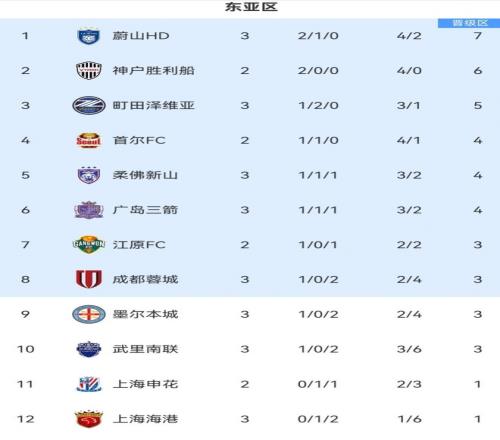 隨著成都02!海港02,難求一勝!亞冠最新積分榜:中超冠軍墊底