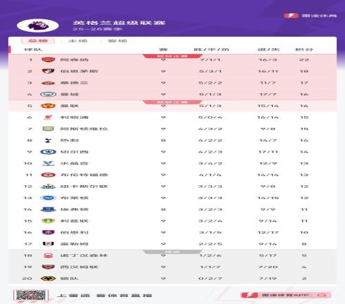 雷速體育10月27日報道宣稱 新賽季英超聯(lián)賽來到第9輪,阿森納繼續(xù)領(lǐng)跑積分榜,但在積分榜緊追阿森納的卻不是利物浦、曼城、切爾西等豪門,而是伯恩茅斯、桑德蘭。