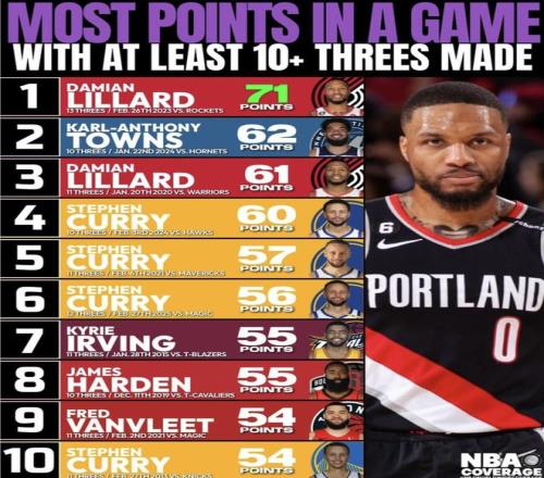 近日,NBA Coverage發(fā)布了“單場(chǎng)至少命中10記三分的最高得分”榜單——利拉德以71分領(lǐng)跑,唐斯62分緊隨其后,庫(kù)里四度上榜(含2025年對(duì)魔術(shù)的12記三分)。下方按對(duì)手、比分、年齡、三分命中等要素逐條列出,便于讀者快速核對(duì)與對(duì)比(數(shù)據(jù)截至2025年10月17日)
