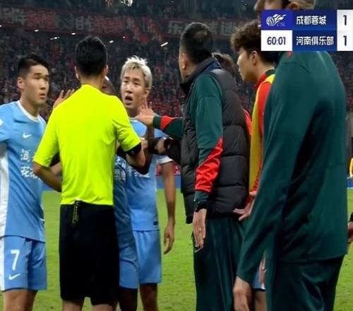 而其他河南隊球員也紛紛找主裁和第四官員投訴,如果河南隊賽后就蓉城球迷的歧視行為上訴,恐怕俱樂部也將因此受到重罰。