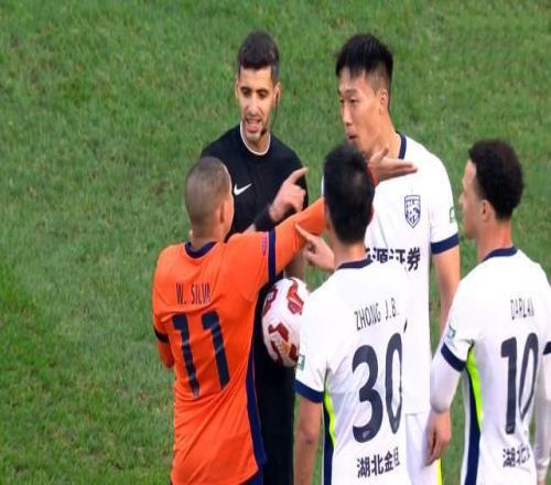 比賽第25分鐘,韋林頓帶球似傳似射,球擦著立柱偏出,薩里奇不滿沒有給位置更好的自己。青島海牛的進(jìn)攻很簡單,三外援之間的配合,多次打穿三鎮(zhèn)的防線。本場比賽是由外籍裁判吹罰,尺度較為寬松,雙方的很多對抗都沒有判罰犯規(guī)。三鎮(zhèn)球員的斗志,明顯是不如海牛的,畢竟提前完成了保級,進(jìn)攻只有外援各自為戰(zhàn),踢的比較開放。