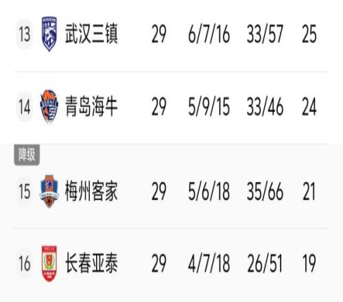 這樣的比賽結(jié)果,也使得長(zhǎng)春亞泰提前一輪降級(jí)。