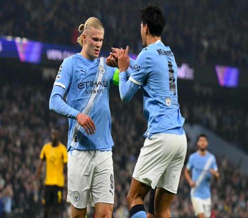 第27分鐘,曼城繼續(xù)在前場圍攻,多庫下底傳中,哈蘭德無人盯防,面對舊主完成進(jìn)球。