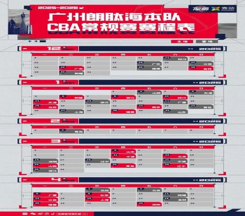 廣州朗肽海本隊(duì)20252026賽季賽程調(diào)整公告