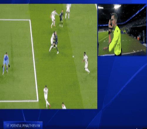 裁判蒂爾潘毫不猶豫,第一時(shí)間判罰點(diǎn)球,VAR介入,犯規(guī)地點(diǎn)在禁區(qū)外,蒂爾潘改判任意球。