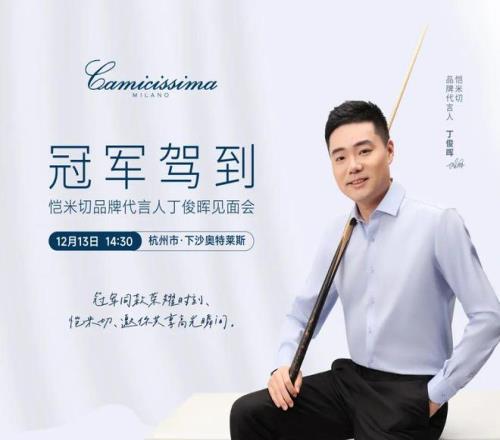 12月13日,一位真正的冠軍——丁俊暉,將帶著他的故事與風采,與他的冠軍單品,“價”臨杭州下沙。