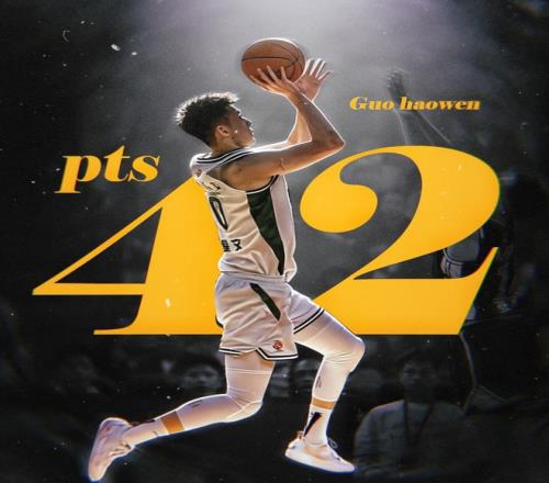 首發(fā)出戰(zhàn)37分鐘,郭昊文27投14中爆砍42分6籃板8助攻,在 三分線外12投6中,罰球線上12罰8中,破壞力極強(qiáng)。