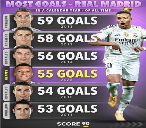 現(xiàn)在姆巴佩在2025年已經(jīng)為皇馬打進(jìn)55球,距離C羅當(dāng)年59球的紀(jì)錄只差4球(數(shù)據(jù)截至北京時(shí)間今天)。按賽程看,皇馬年底還有聯(lián)賽、歐冠、國王杯等大概4–5場正式比賽,理論上給了他足夠的刷分空間,只要正常出場,這個(gè)差距并不算大。