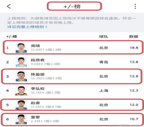 眾所周知,球員場上的正負(fù)值,直接反映出球員在攻防兩端的作用和效率,以及與球隊(duì)的融入度、化學(xué)反應(yīng)等。北京首鋼男籃有4名本土球員,排在正負(fù)值榜前6,足以說明,這支球隊(duì)的即戰(zhàn)力和整體實(shí)力,是多么的強(qiáng)大無比。