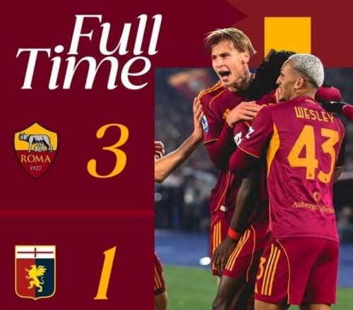 羅馬是處于積分榜前四的球隊,雖然上一場不敵尤文,但是本輪回到主場對陣熱那亞還是展現(xiàn)了強大的實力,上半場就連入三球,提前殺死了比賽,馬蒂亞斯-蘇萊、科內(nèi)、埃文-弗格森先后建功,第87分鐘埃哈托爾幫助熱那亞追回一球,最終羅馬3-1全取三分,收獲賽季第11場勝利,以33分繼續(xù)力壓32分的尤文暫列第4名。