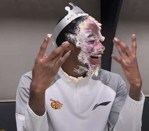 當全部東西都弄完之后,胡明軒肯定是最積極的,他和王少杰、徐杰等人一起將薩姆納摁在蛋糕上,整個更衣室的人都在吶喊,顯得極為開心。
