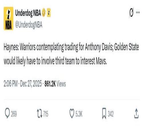 而此前名記Chris Haynes才爆出勇士隊(duì)有意得到濃眉哥,為了配平合同,勇士隊(duì)大概率需要送走追夢或者巴特勒。