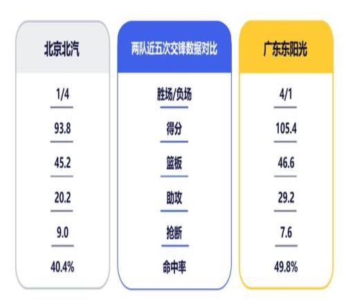 1月1日,CBA常規(guī)賽第9輪,廣東東陽光將在“元旦大戰(zhàn)”中客場挑戰(zhàn)北京北汽男籃。上賽季兩隊交手2次,雙方各取1勝。