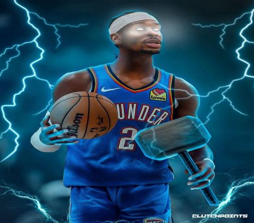 本賽季亞歷山大場均33.2分鐘,拿到32.1分6.4助攻4.7籃板1.6搶斷0.7蓋帽,命中率56.3%,三分命中率42%,罰球命中率88.6%,雷神真的太強大。